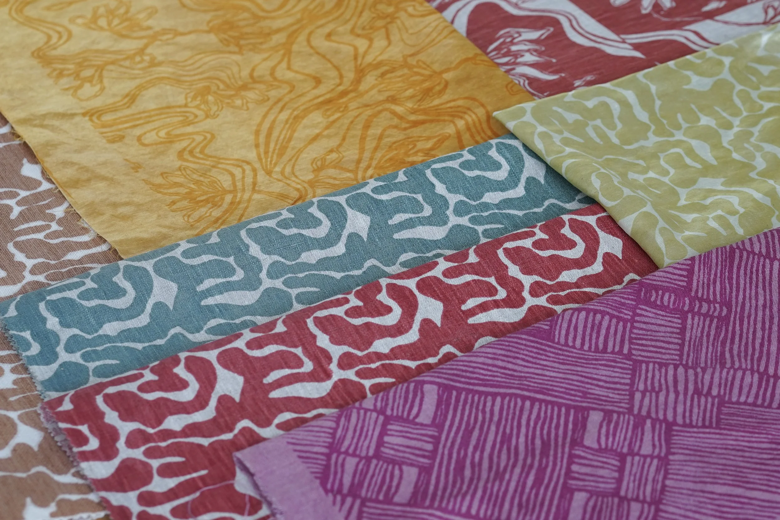 As part of the Homo Faber Fellowship, in collaboration with the Michelangelo Foundation, Madder Cutch & Co and intern Emily Criddle co-created a naturally dyed and printed interiors collection. We are excited to share with you our new screen printed and mordant printed designs, inspired by the Art Deco style and drawn from tangling madder plant root.